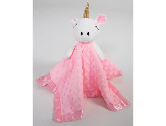 Keepsake pink unicorn lovey security blanket plush toy for baby showers, new pet gift, baby's first toy, baby girl gift
