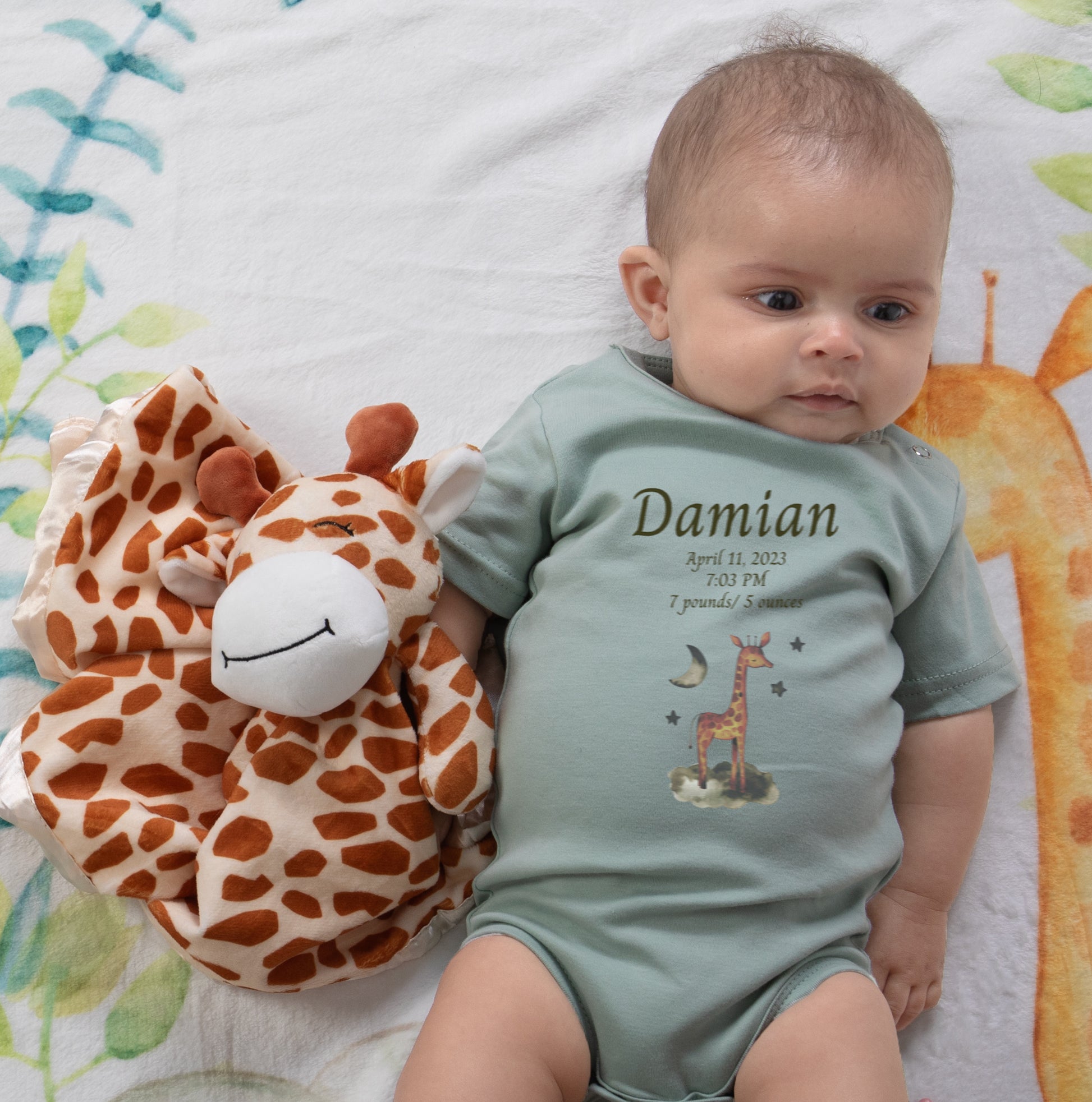 Stuffed Animal: Our adorable stuffed giraffe lovey and security blanket companion is the perfect cuddly friend for your baby. Crafted with love, it's sure to provide comfort and companionship throughout the early years. Made of soft plush and lined with satin, this lovable animal is sure to be your baby's new best friend.