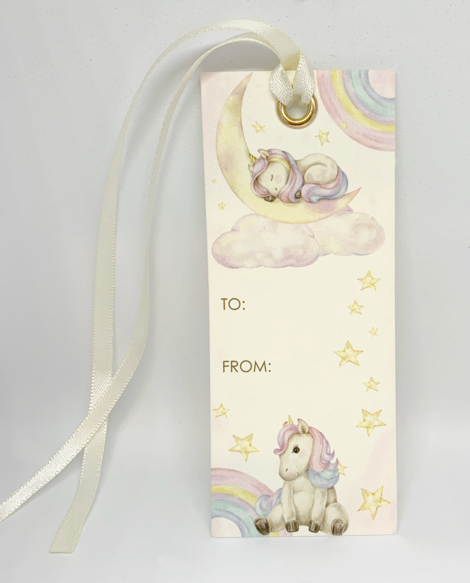 - Heavy weight bookmark/gift card with satin ribbon- 1.5" W x 4" H